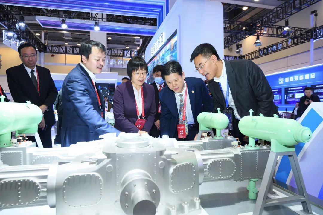 本次展会,沈鼓携六大精品盛装亮相,150万吨等级乙烯“三机”裂解气压缩机组、十万等级空分装置压缩机组、15000kn活塞力往复式压缩机吸引在场嘉宾纷纷驻足观赏。