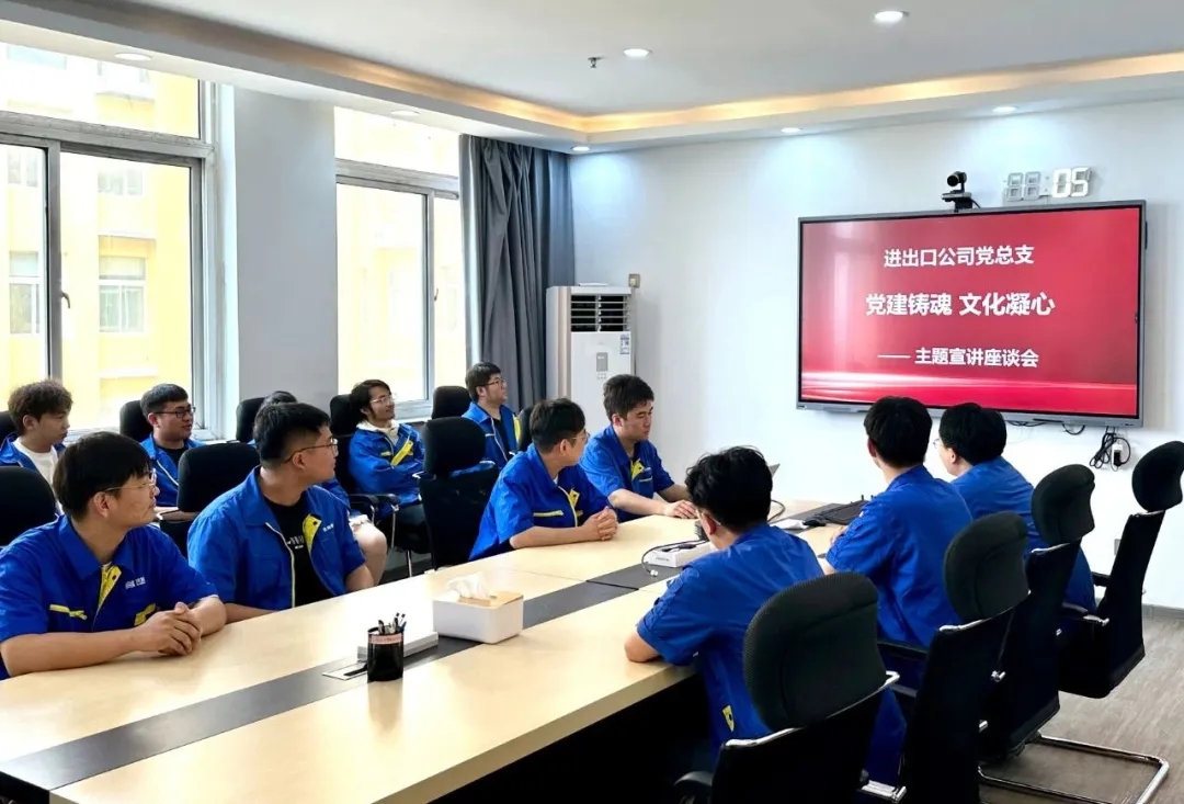 进出口公司党总支组织青年员工开展“党建铸魂 文化凝心”主题座谈会,共话党建工作与企业发展的深度融合。座谈会以“从党史中汲取奋斗力量”为题,结合集团“大国重器”使命和“奋斗者文化”,阐释党建与生产经营深度融合的实践路径。青年党员代表畅谈了对党建与生产经营融合共进的理解和体会。通过座谈交流,与会青年们进一步增强了使命感责任感,立志在党旗感召下,为推动沈鼓国际化进程贡献更多青春力量。