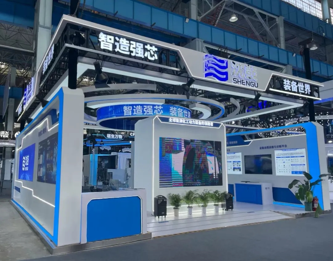 沈鼓2025全球工业互联网大会展位面积90平方米,除了展示企业综合实力以外,还专门策划了两个展区,包括沈鼓数转智改成效区、互动体验区。其中数转智改区主要展示了沈鼓运营数智化、产品智能化、服务智慧化三部分内容,互动体验区则通过接入智鼎工业互联网平台、自控一键启停,动态仿真和数字孪生平台以及沈鼓云远程监测与诊断平台,与观众进行互动演示。