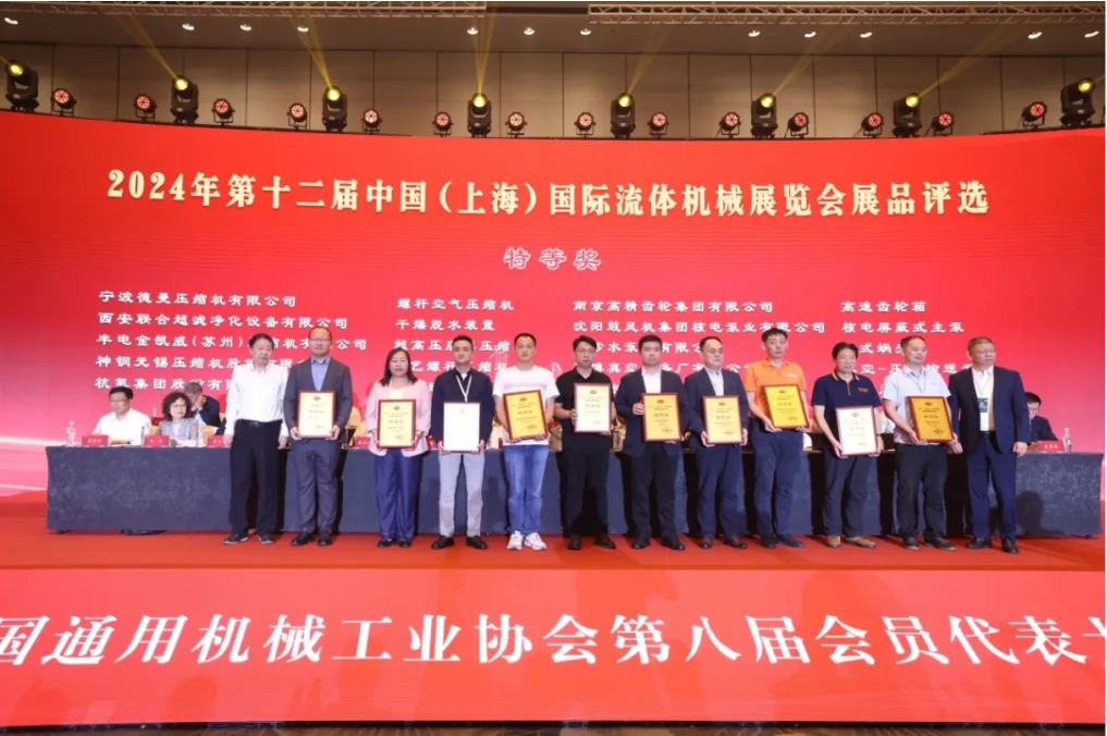 会议期间举办了第十二届中国(上海)国际流体机械展览会颁奖仪式,沈鼓集团凭借“第三代百万吨级乙烯装置用‘乙烯三机’裂解气压缩机组”荣获展会更高荣誉——特等奖,充分彰显了沈鼓在大型石化装备领域的技术实力。